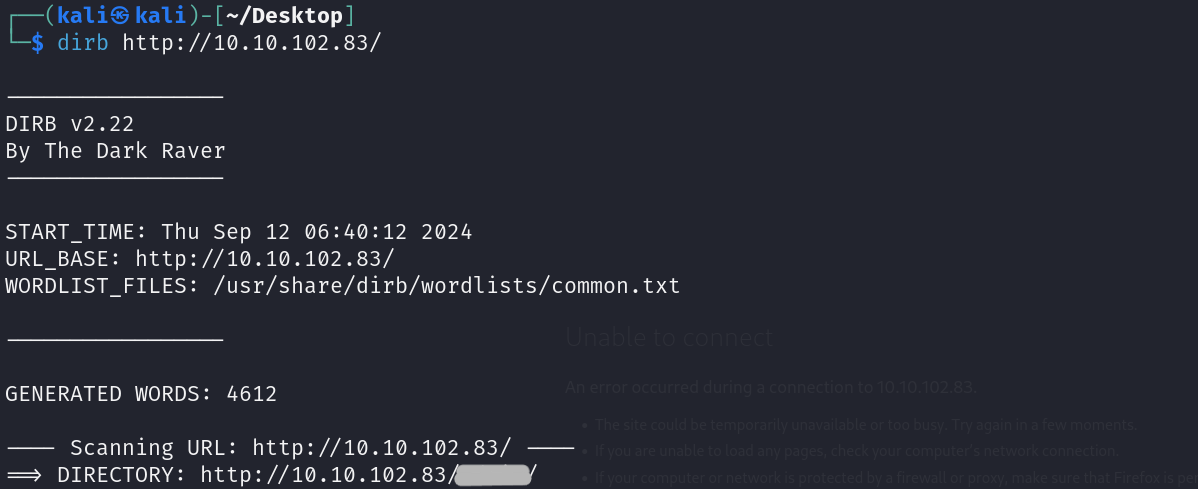 Then we should find the hidden directory. You can use the your favorite directory scan tool. I am using Dirb because it is very easy to use.