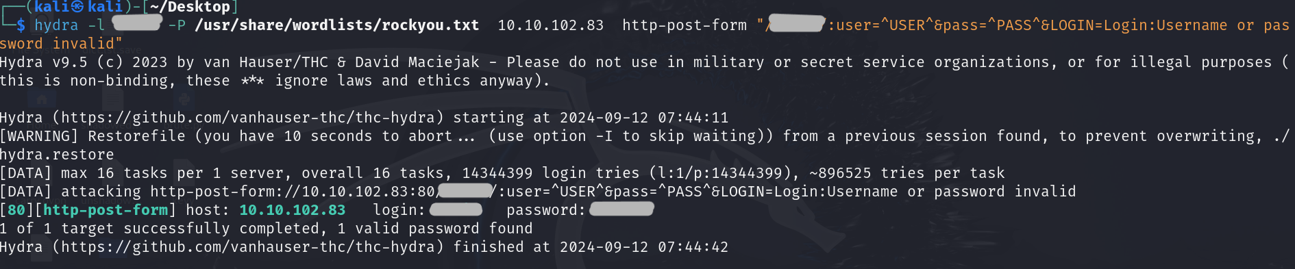 And now we should find the password. For this we will use hydra to brute-force the password.